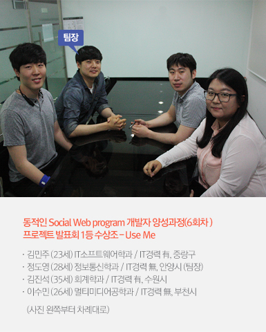 | 정도영 | 감사합니다~ 팀명은 Use Me이고, 우리를 뽑아달라는 의미로 지었습니다. |