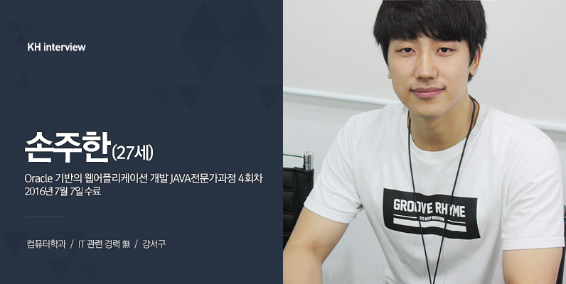 처음에는 졸업하고 바로 취직할 생각이었는데, 우연히 KH에서 진행한 취업설명회를 듣게 됐어요. 설명회가 끝나고 생각해보니 자바 분야가 정말 괜찮아 보였고, 당시 제 지식수준으로는 취직해도 적응하기가 힘들 것 같아서 더 깊게 배우기 위해 KH를 찾게 됐어요.