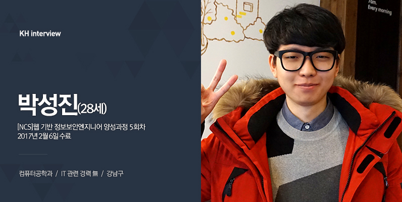 안녕하세요! 28살 박성진입니다. 졸업 후에 4개월 정도 직장에 다니다가 정보보안 전문가가 되고 싶어서 회사를 그만뒀고, KH를 다니며 정보보안 교육을 수료하게 되었습니다.
