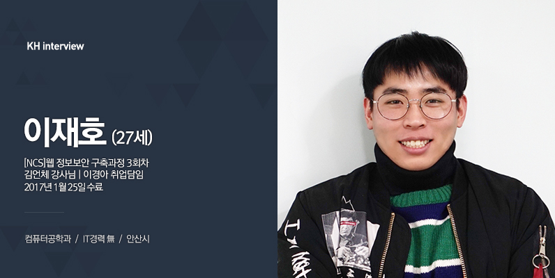 안녕하세요. 컴퓨터공학을 전공했고, 웹 정보보안 구축과정 수료를 앞둔 이재호라고 합니다. (웃음)