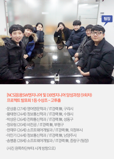 | 문상훈 | 여기서 끝나는게 아니라 취직해서도 서로에게 힘이 될 수 있는 좋은 관계로 거듭나면 좋겠어요! |
