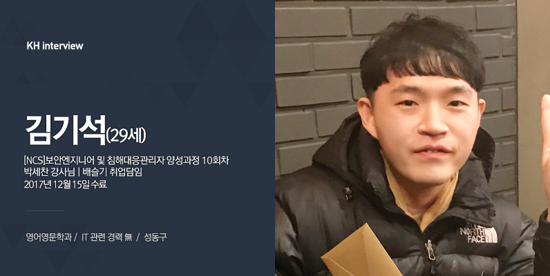 정보 보안이라고 했을 때 막연하게 컴퓨터를 해킹하는 해커들을 잡고, 보안 하면 끝인 줄 알았어요. 하지만 KH정보교육원와서 보안을 배운 후 악성 바이러스를 막고, 유출방지만 하는 게 끝이 아니라 체크리스트와 모의 해킹을 통해서 체계적으로 보안컨설팅을 진행한다는 걸 알게 됐습니다.