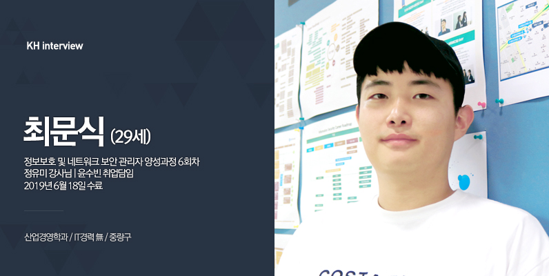 KH에 와서 상담받기 전까지는 보안 분야에 대해서는 전혀 알지 못했어요. 그런데 상담을 받아보면서 상담선생님께서 제 적성과 커리어까지 심도 있게 상담해주시고 보안 과정에 대해서도 추천해주셨습니다. 상담을 듣고 오래 고민할 필요 없이 보안 과정 수강을 결정할 수 있었죠. (웃음)