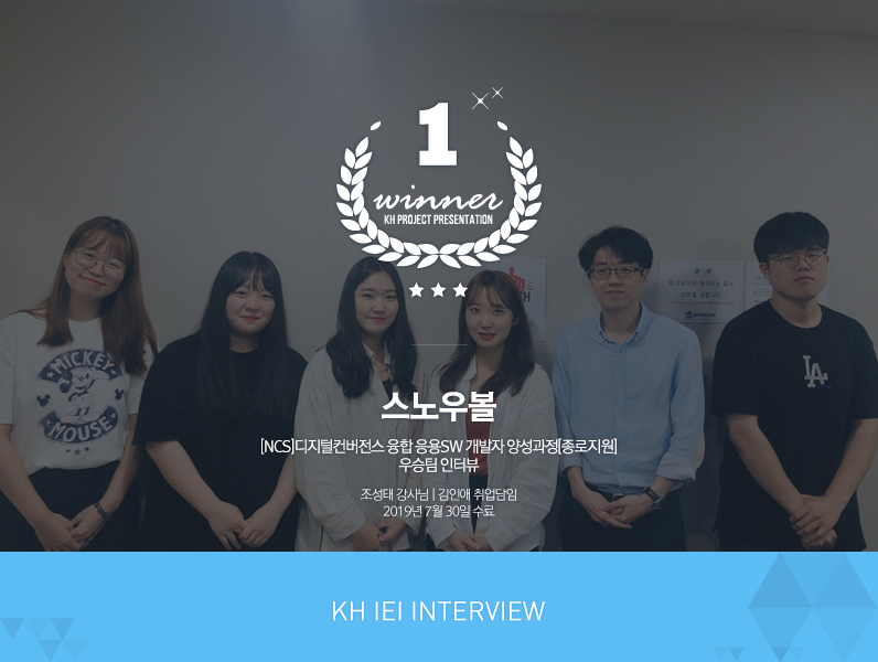 저희 팀은 ‘스노우볼’이란 이름으로 시작을 하게 되었는데요. 스노우볼이 눈 뭉치라는 뜻이잖아요. 눈 뭉치가 처음에는 작았지만 점점 눈 뭉치를 굴릴수록 커지듯이, 저희도 프로젝트를 진행하면서 큰 눈 뭉치처럼 성장하자는 뜻에서 지었습니다. 수료하기까지 마침표를 찍으면서 돌아보니 팀명 대로 잘 마무리된 것 같아 뿌듯합니다. (웃음) |