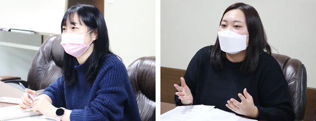 | 신민채 | 일단은 업무지시대로 일을 하고 나중에 면담을 요청해요. ‘이때는 이 방향이 좋지 않았을까요?’ 하면서 소통을 하려고 해요. 말을 하지 않다 보면 쌓이기도 쉽고 상대방의 의사를 알 수 없잖아요. 그래서 소통을 하면서 내 생각도 말하고 상대방의 입장도 생각해보는 것 같아요. 그러다 보면 불만 사항이나 문제도 좋은 방향으로 해결이 되더라고요. |