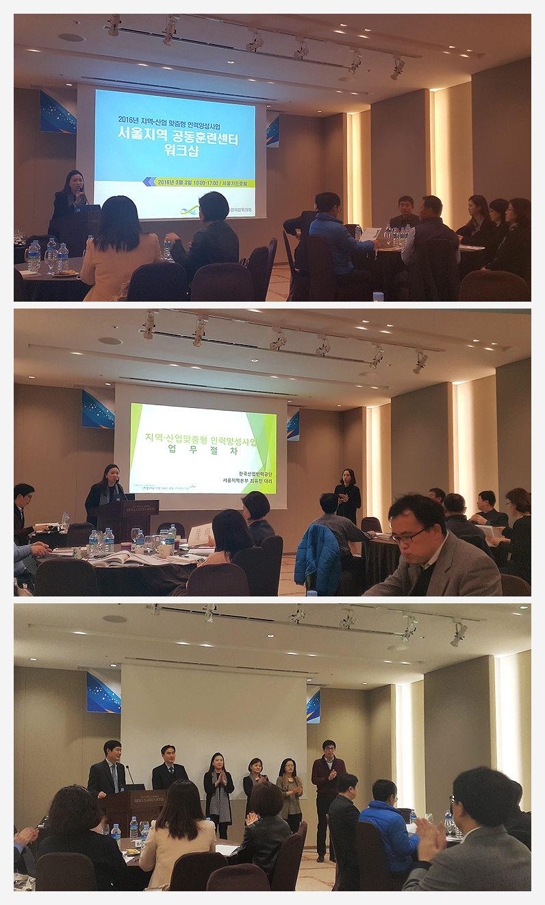 인력양성 사업의 운영계획 및 운영방안 등과 공동훈련센터 훈련현황 및 성과달성 방안 등의 주제를 다룬 워크샵이었습니다.