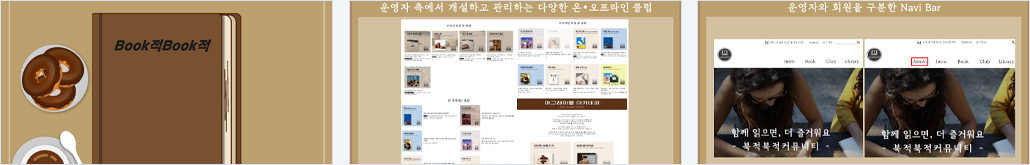 - 사용자가 자유롭게 독서를 하고 모임을 할 수 있도록 제작 - 공공데이터와 API를 활용한 효율성 고려 - 불건전한 모임 및 회원에 대한 관리 철저 |