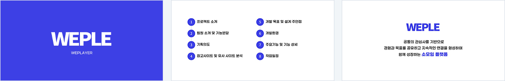 1. PC 환경 웹사이트 2. 오프라인 모임 기능 3. 카테고리 추천 강화 |