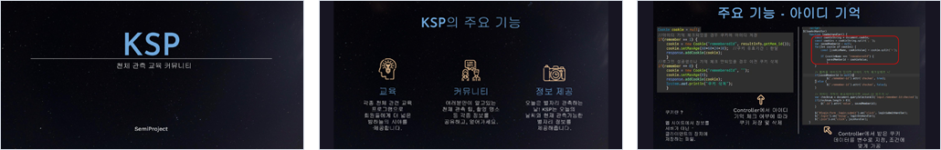 환자등록, 보호자 회원가입 시 아이디 중복 확인 및 등록된 환자이름과 주민번호 확인 절차를 거쳐 가입되도록 함. 일지 목록 보기, 댓글 작성(미구현) 스태프 로그인, 환자별 요양일지 조회 및 작성 환자별 건강일지 조회 및 작성 보호자의 댓글에 답변 달기(미구현)
