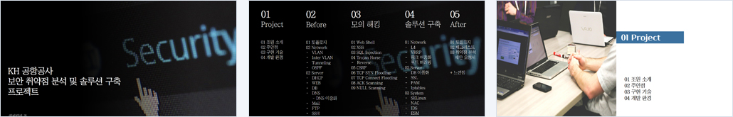 개요 KH 공항 공사는 면세점 신규 사업자 선정 입찰을 진행 하던 도중 해커의 공격이 발생하였다. 전략 기획 본부 PC에 메일을 통해 악성 프로그램을 유포하여 사내 서버를 마비 시켰고 그로인해 참여 희망 업체의 면세 점포 운영 계획 등을 담은 사업 제안서와 가격 입찰서 정보가 유출되는 사고가 발생하였다. 이에 KH 공항 공사는 보안 취약점을 인지하고 사업자들의 정상적인 입찰, 서버의 작동을 위해 그에 맞는 보안 인프라를 재구축 하고 모의 해킹 및 보안 솔루션 단계를 통해 보안을 강화하기로 하여 보안 업체에 보안 솔루션을 의뢰하였다.