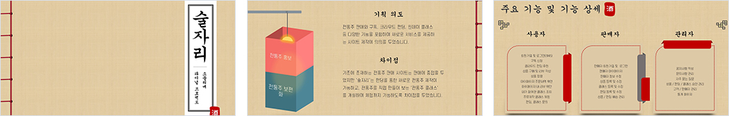 기존의 전통주를 판매하는 사이트들과 크라우드펀딩 사이트들의 장점을 접목시켜 새로운 서비스를 제공하는 사이트 제작 |