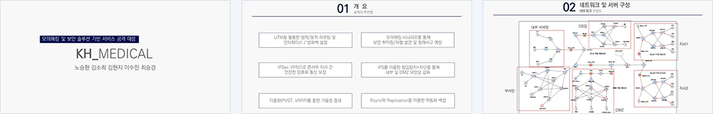 그리고 발견된 각 부분별 취약점들을 바탕으로 서비스의 가용성을 보장하는 종합적인 보안 솔루션 및 인프라망 재구축을 시행했다. "