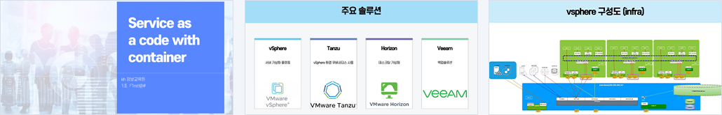 tanzu를 이용한 고가용성 서비스 구성 veeam을 이용한 백업 고가용성 구성 VDI를 이용한 외부망/내부망 분리 |