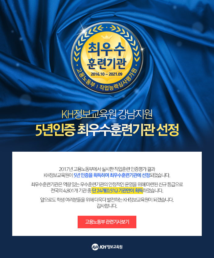 No.1 국내 최대의 취업 실적을 보유한 KH정보교육원에 오신 것을 환영 합니다.