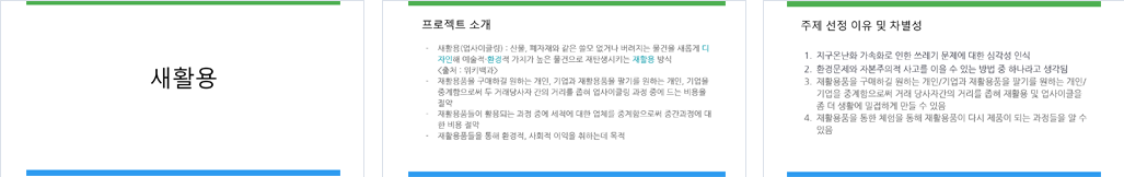 개요 지구온난화로 환경문제가 심각해지는 가운데 생활 속에서 재활용품을 활용해 다시 사용할 수 있는 새활용 제품을 만드는 사람들을 알게되고 서로의 이득에 맞게 재활용품과 새활용제품을 거래해서 환경에 기여하고 재활용품을 팔고 싶어 사람과 사고싶어 하는 사람, 재활용품을 이용해 새활용품을 만들어 팔고 싶은 사람과 사고 싶은 사람을 중계해주는 서비스를 제공한다.