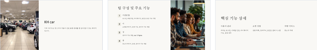 - 상품 상세 정보 표시, 차량 설명 에디터, 결제 기능