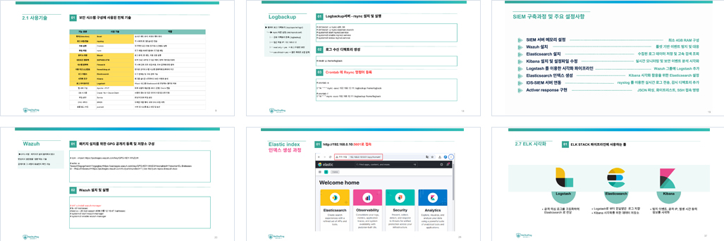 Wazuh, Elasticsearch, Kibana, Logstash를 연동하여 보안 로그 수집, 저장, 시각화, 분석 환경을 통합 구성한다.